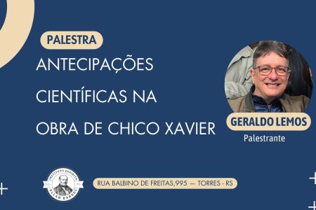 ✨Palestra: Antecipações científicas na obra de Chico Xavier com Geraldo Lemos Neto ocorreu no dia 01/09/2025 às 20h no Inst. Espírita Allan Kardec Rua Balbino de Freitas, 995 — Torres–RS