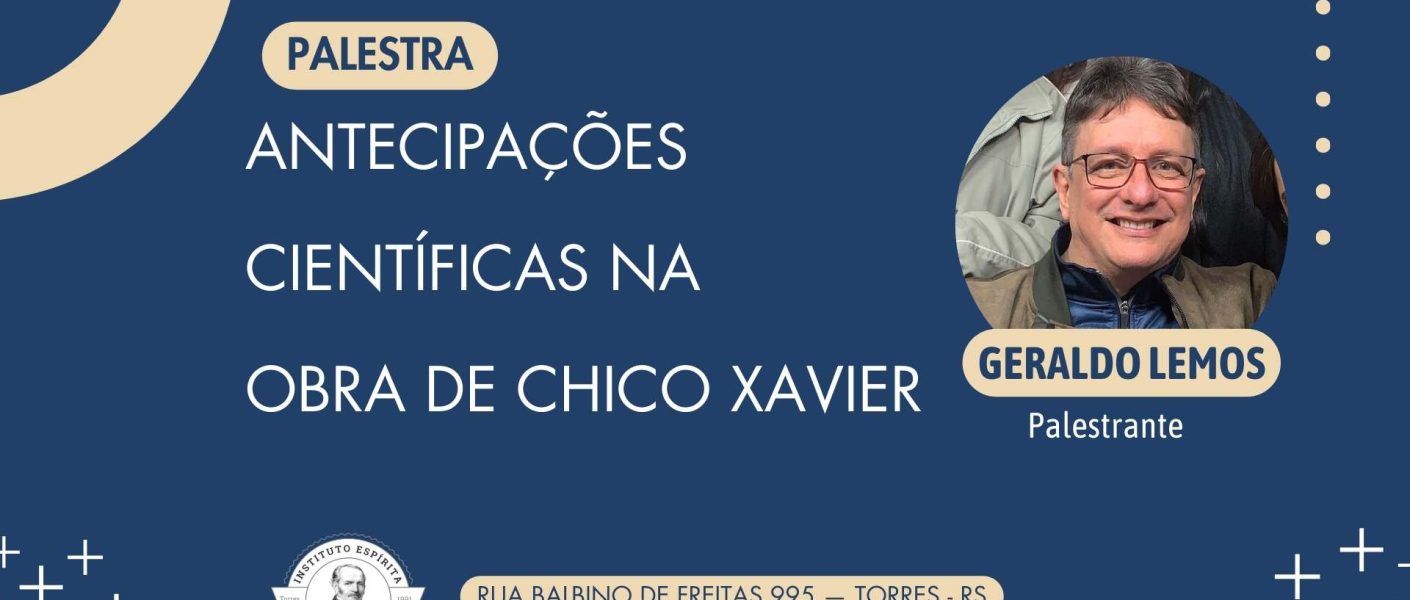 ✨Palestra: Antecipações científicas na obra de Chico Xavier com Geraldo Lemos Neto ocorreu no dia 01/09/2025 às 20h no Inst. Espírita Allan Kardec Rua Balbino de Freitas, 995 — Torres–RS